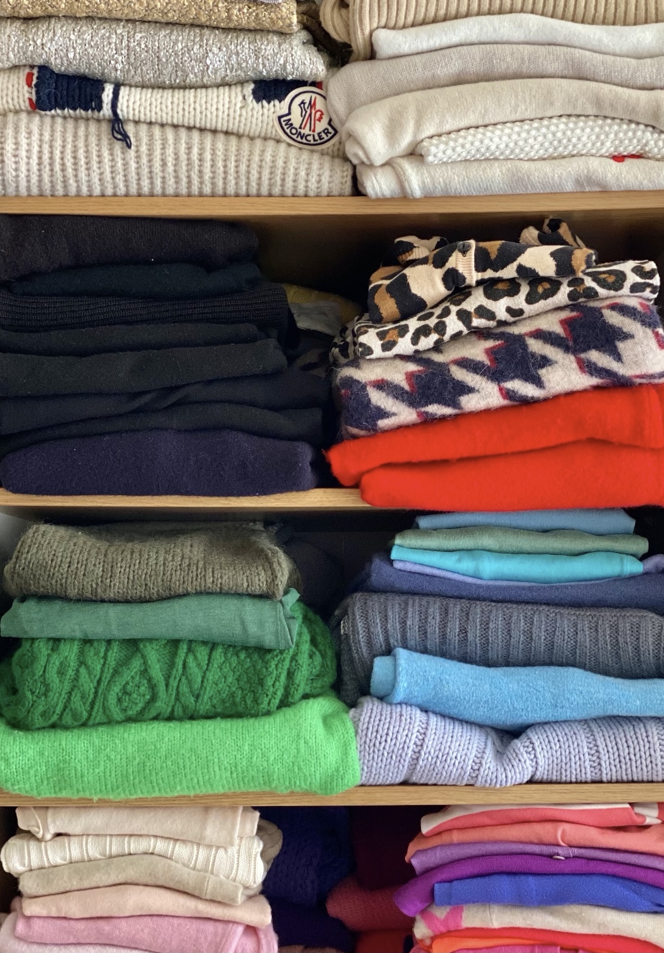 This time I decided to divide the closet by colors too: comfort? Efficiency? Or purely madness? Don’t know, but in the meantime, it’s good for the mood. As they say: clear desk, clear mind! (hope it applies also for closets!). Although Oscar Wilde had another opinion on this. (continue below)